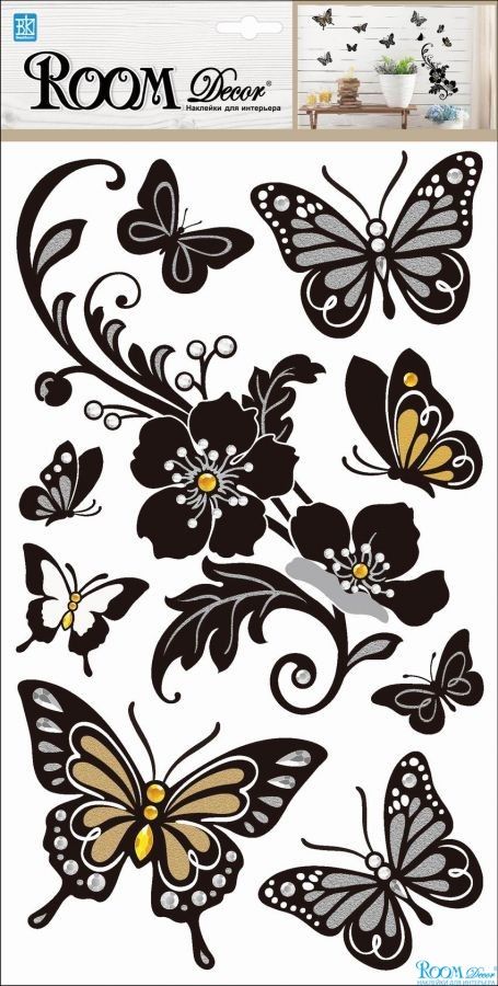 0911 РLA «БС» Бабочки с цветами 24х41см (влагост.,3D)/Наклейка/