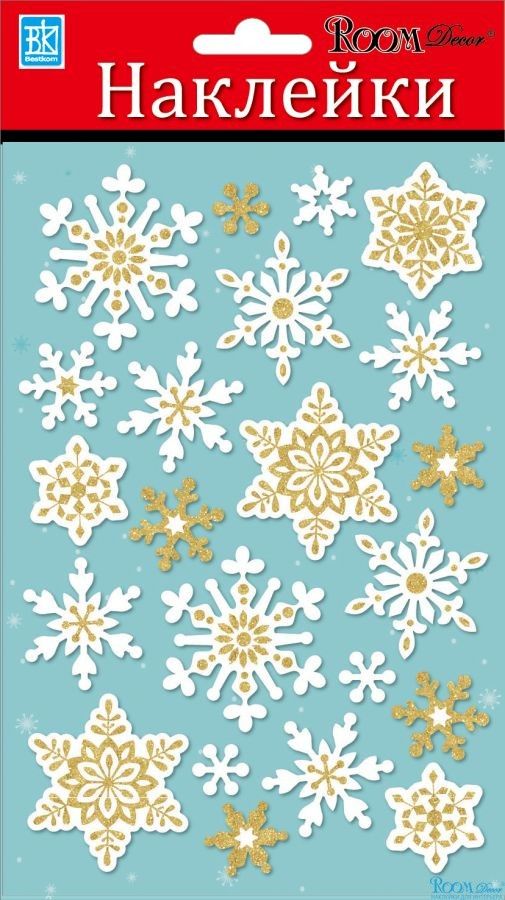 2003 РLX Снежинки Золото МИНИ 14х21см(блестки,влагост.,3D) (НГ) наклейка/12